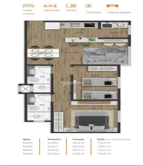 Valor referente e a unidade 1405 - Planta Casal